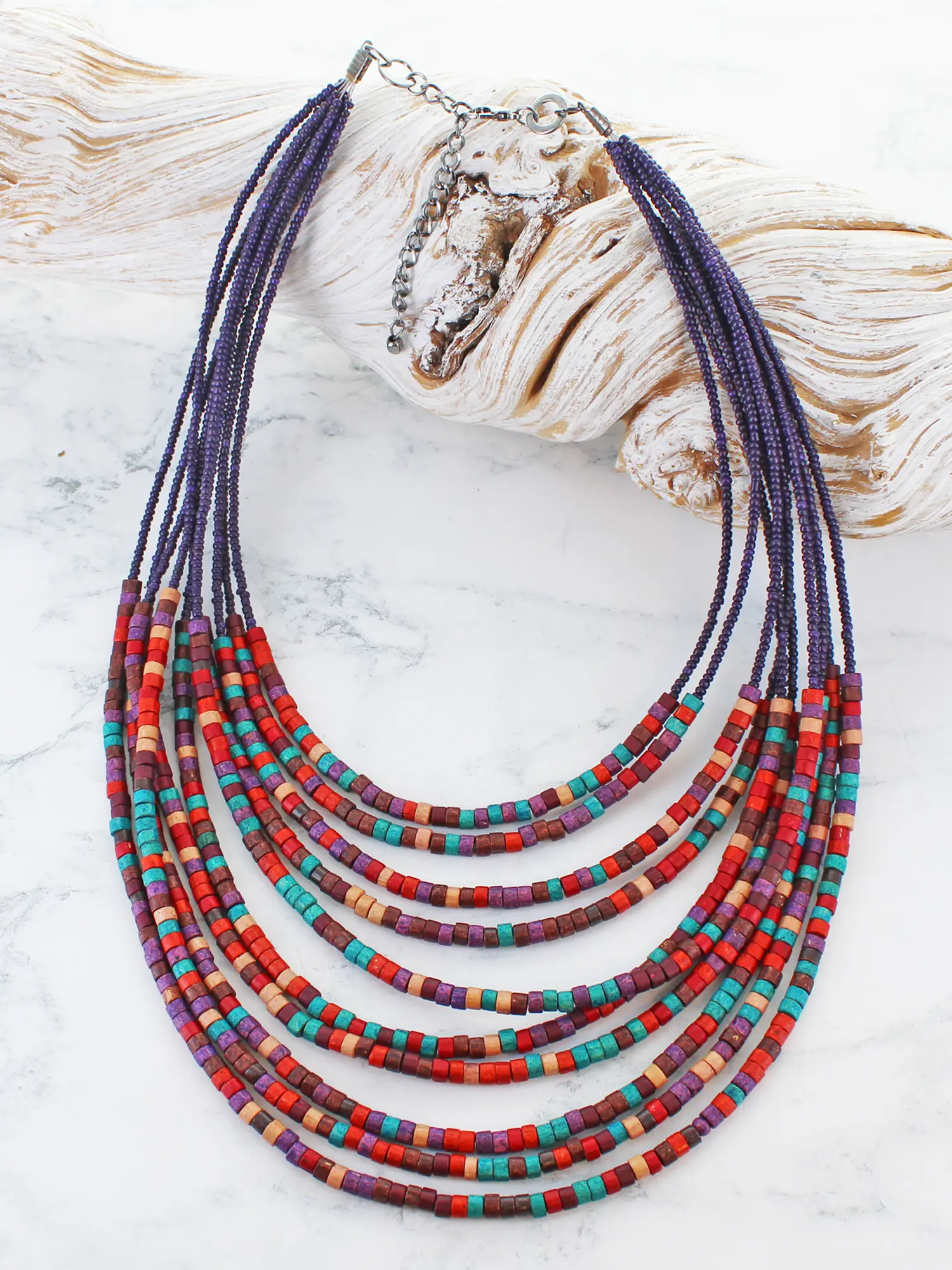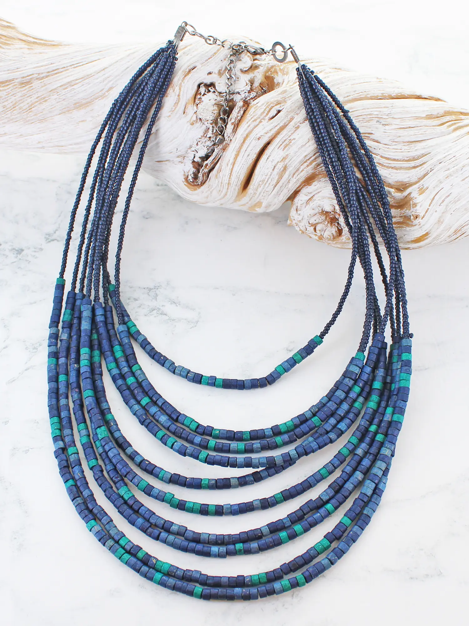 • Suzie Blue Multi-Strand Tube Bead Necklace