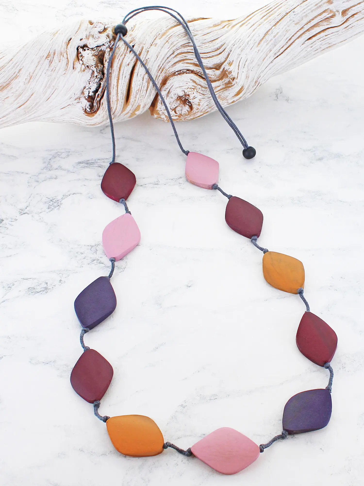 Lotus Feet Multi-strand Wooden Disk Necklace