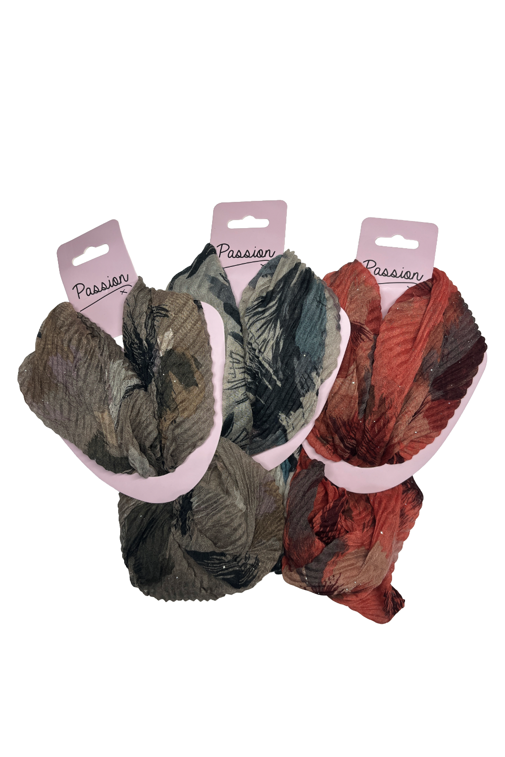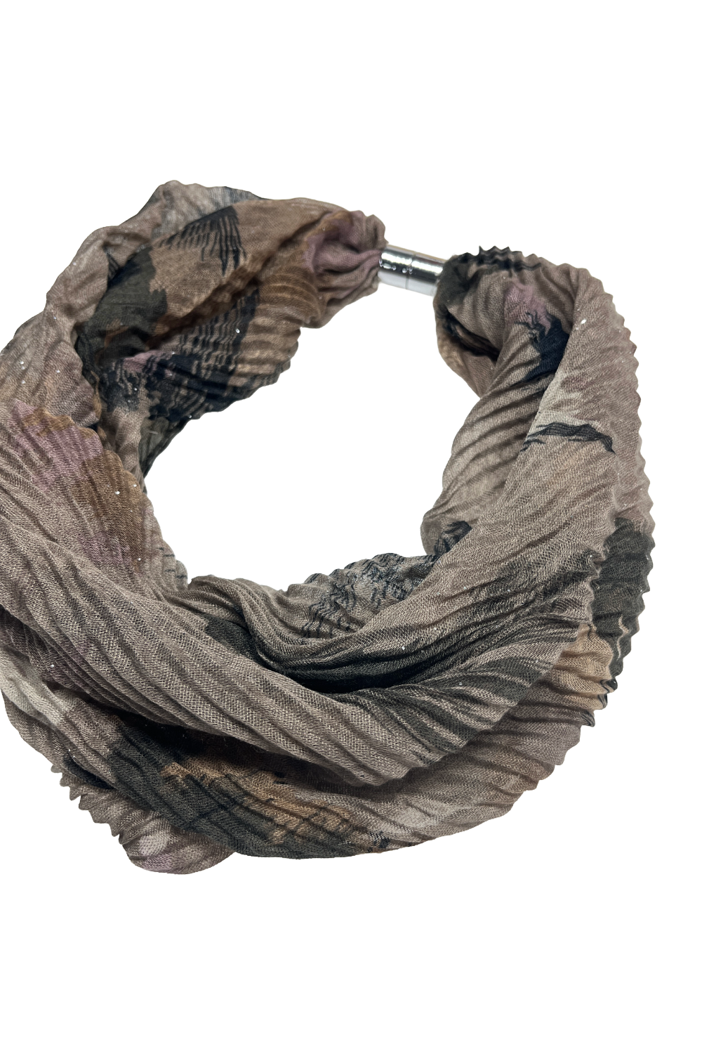 The Abstract Feather Print Magnetic Scarf features a large feather-inspired design with a subtle speckled shimmer. Soft and lightweight, it comes in three colourways and includes a convenient magnetic clasp for easy fastening and comfortable wear.