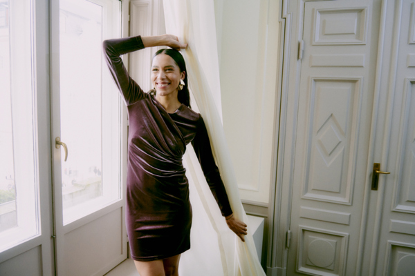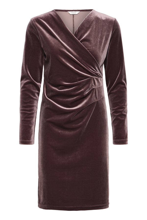 The B.Young Perlina Velour Party Dress features a soft velour finish with a flattering wrap detail that creates a V-neckline. Sitting above the knee, this elegant dress comes in rich winter colours — perfect for seasonal parties and celebrations.