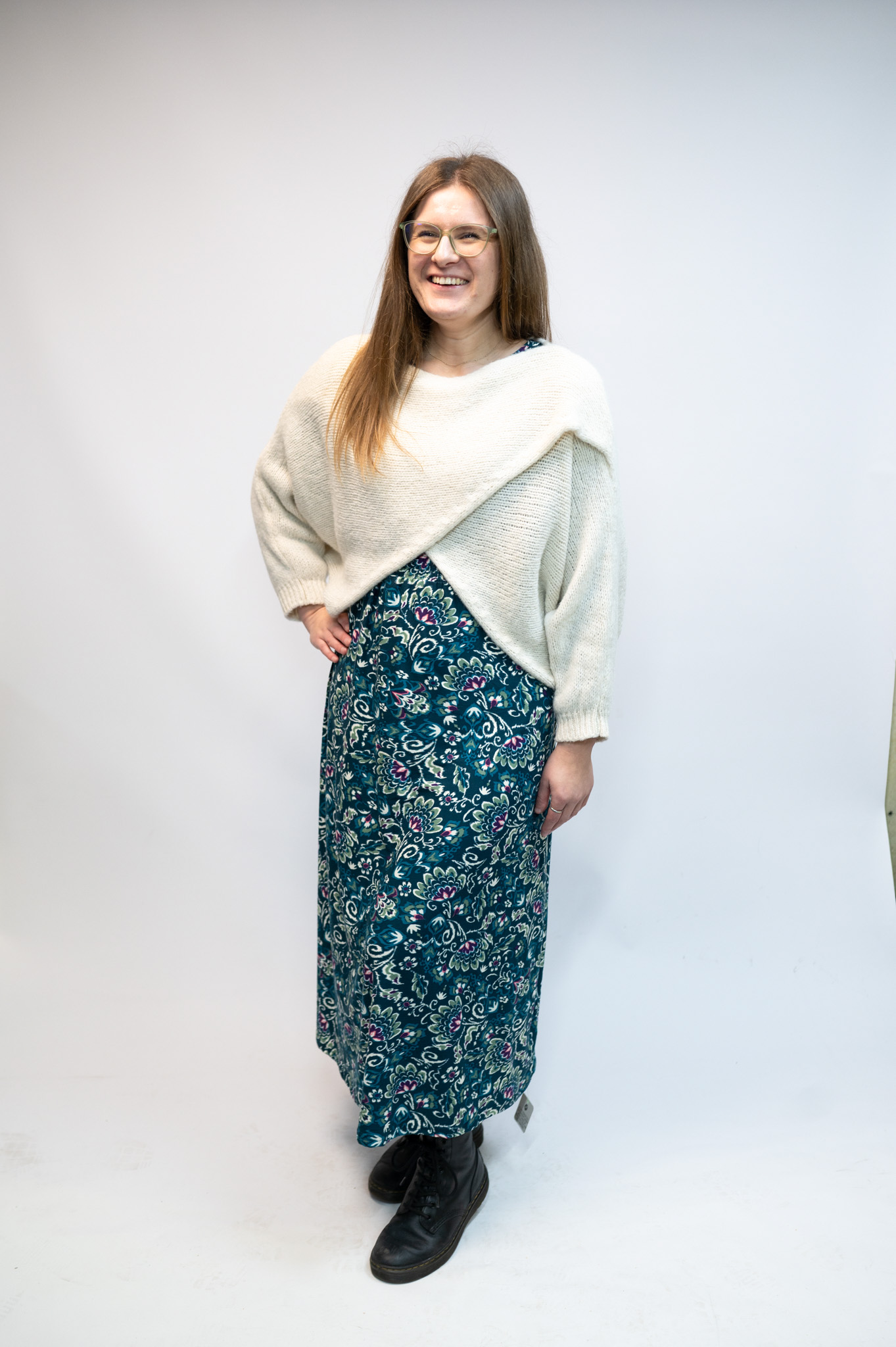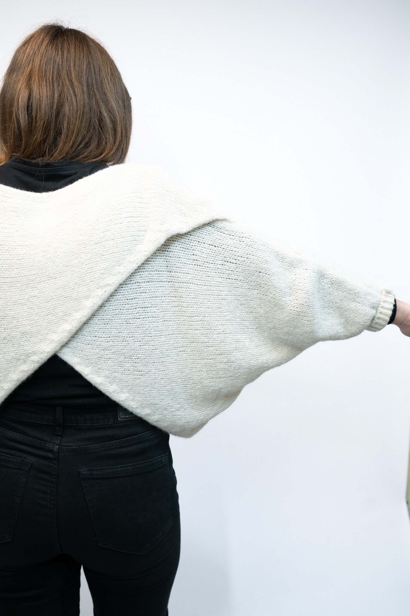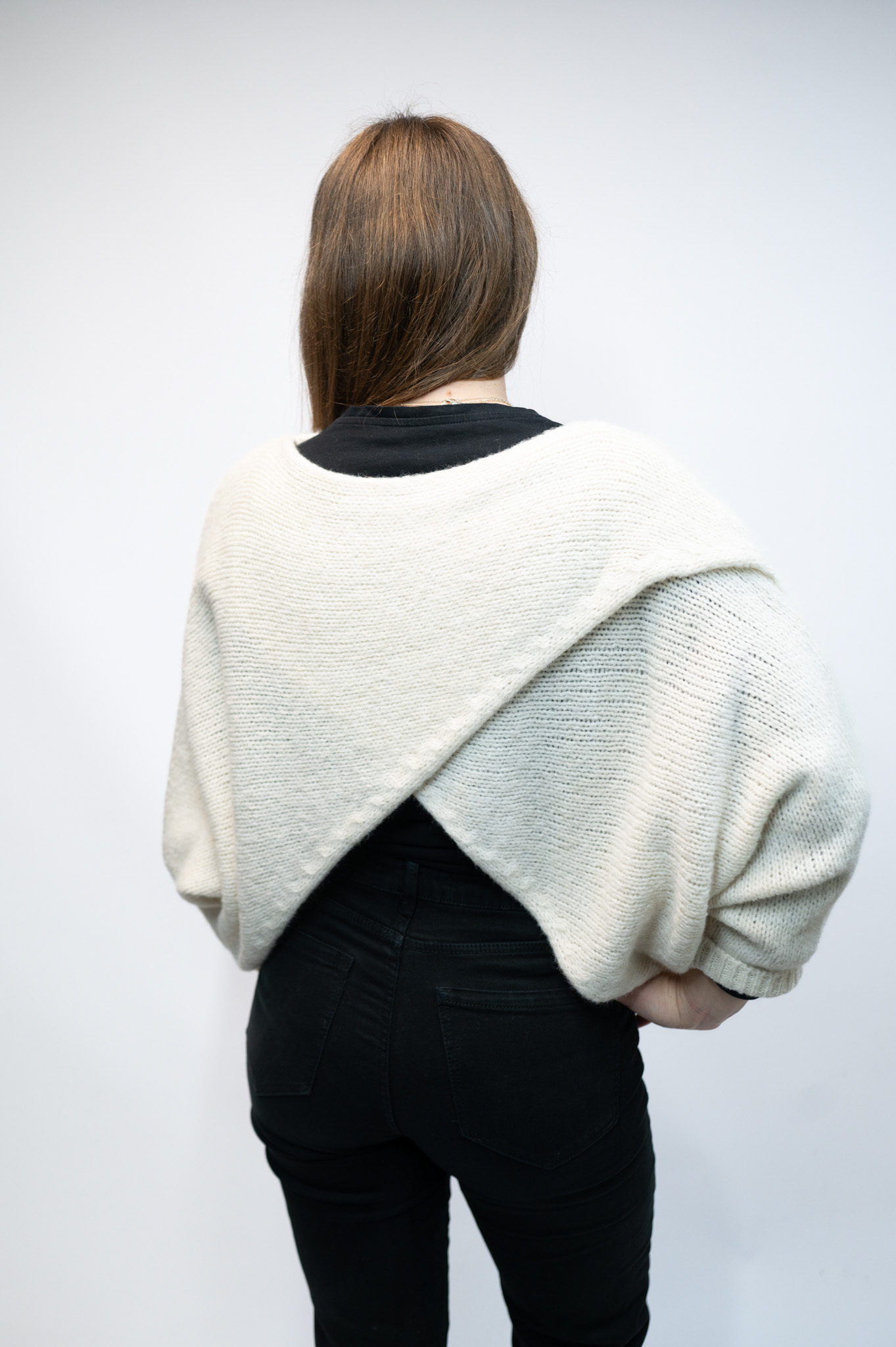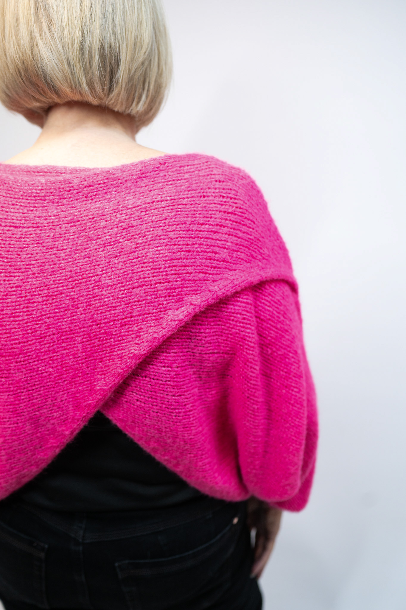 The Camilla Crossover Jumper is a versatile wrap-style knit designed to be worn with the crossover at the front or the back. Featuring relaxed batwing sleeves, it works beautifully layered over dresses or styled with jeans. Available in multiple colours.