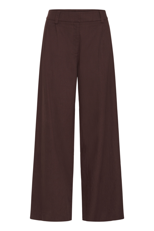 The Fransa Chocolate Linen Wide Leg Trousers are crafted from a breathable linen blend for a lightweight feel. Featuring a flattering pleated waist with belt loops, pockets and a long wide-leg silhouette, they offer a generous fit ideal for warm-weather styling.