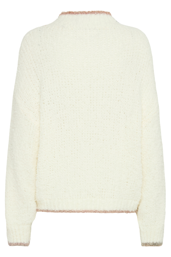 The Cream and Pink Contrast Stitch Knitted Jumper is crafted from a soft, chunky knit in an oversized fit. Featuring dusky pink contrast stitching on a cream base, it’s a cosy, textured layer perfect for casual autumn-winter styling.