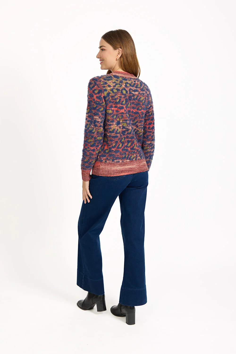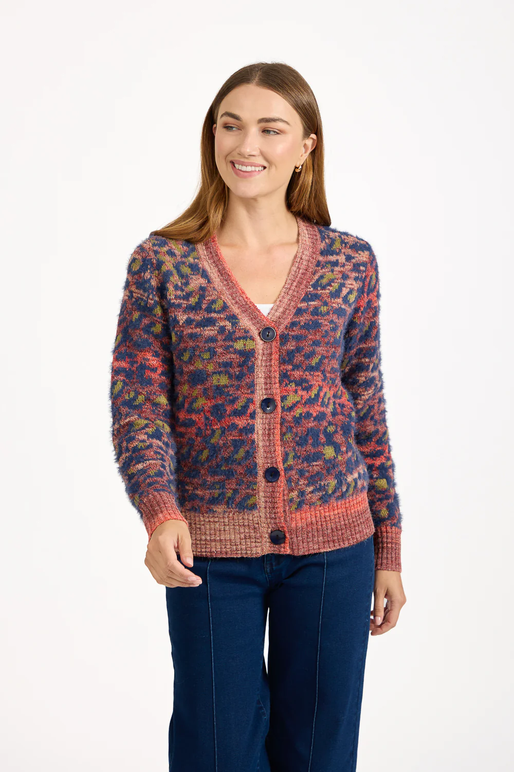 The Mudflower Leopard Print Fluffy Cardigan blends comfort and bold style with its soft knit and all-over leopard pattern. Finished with chunky contrasting buttons, this cosy layer is the perfect statement cardigan for elevating everyday outfits.