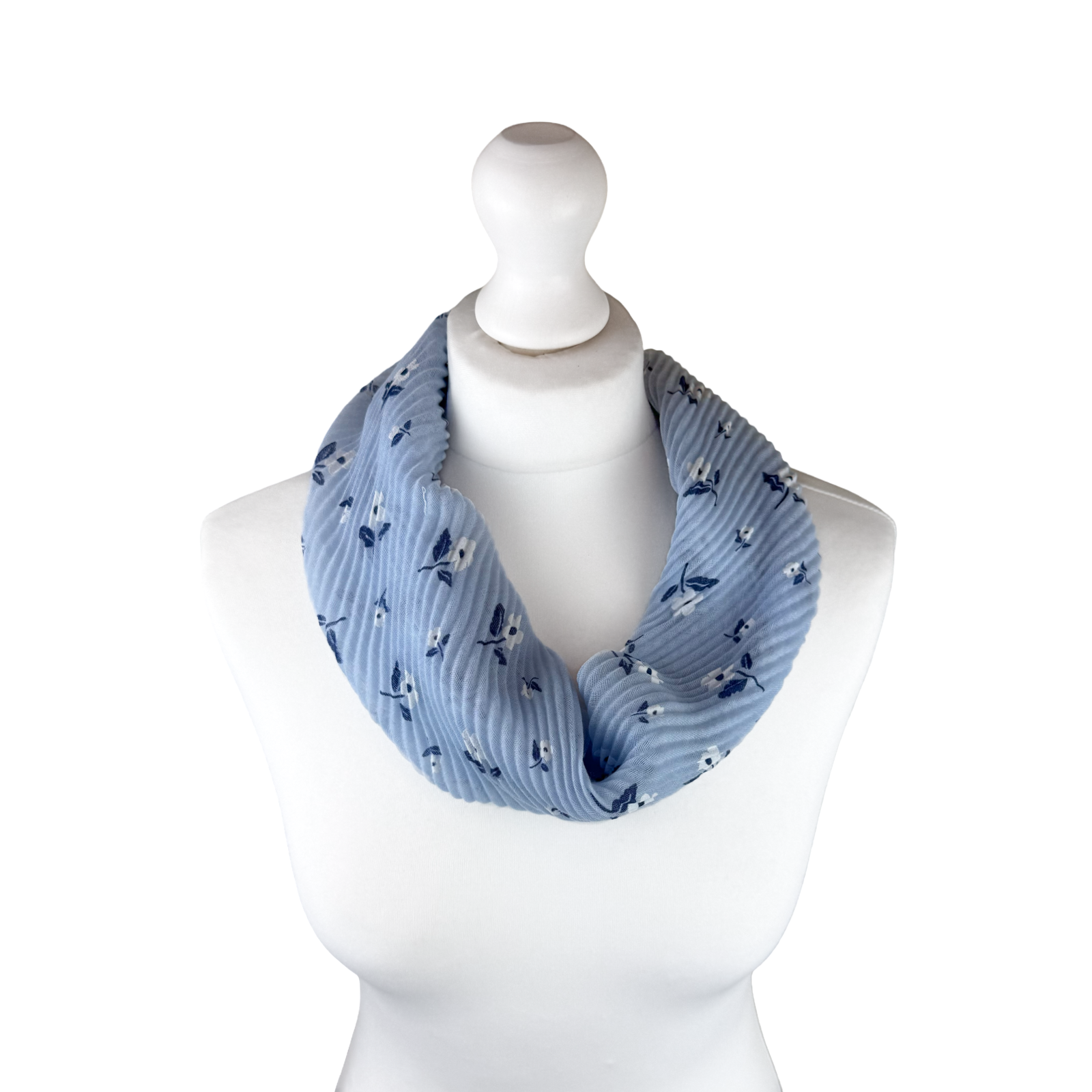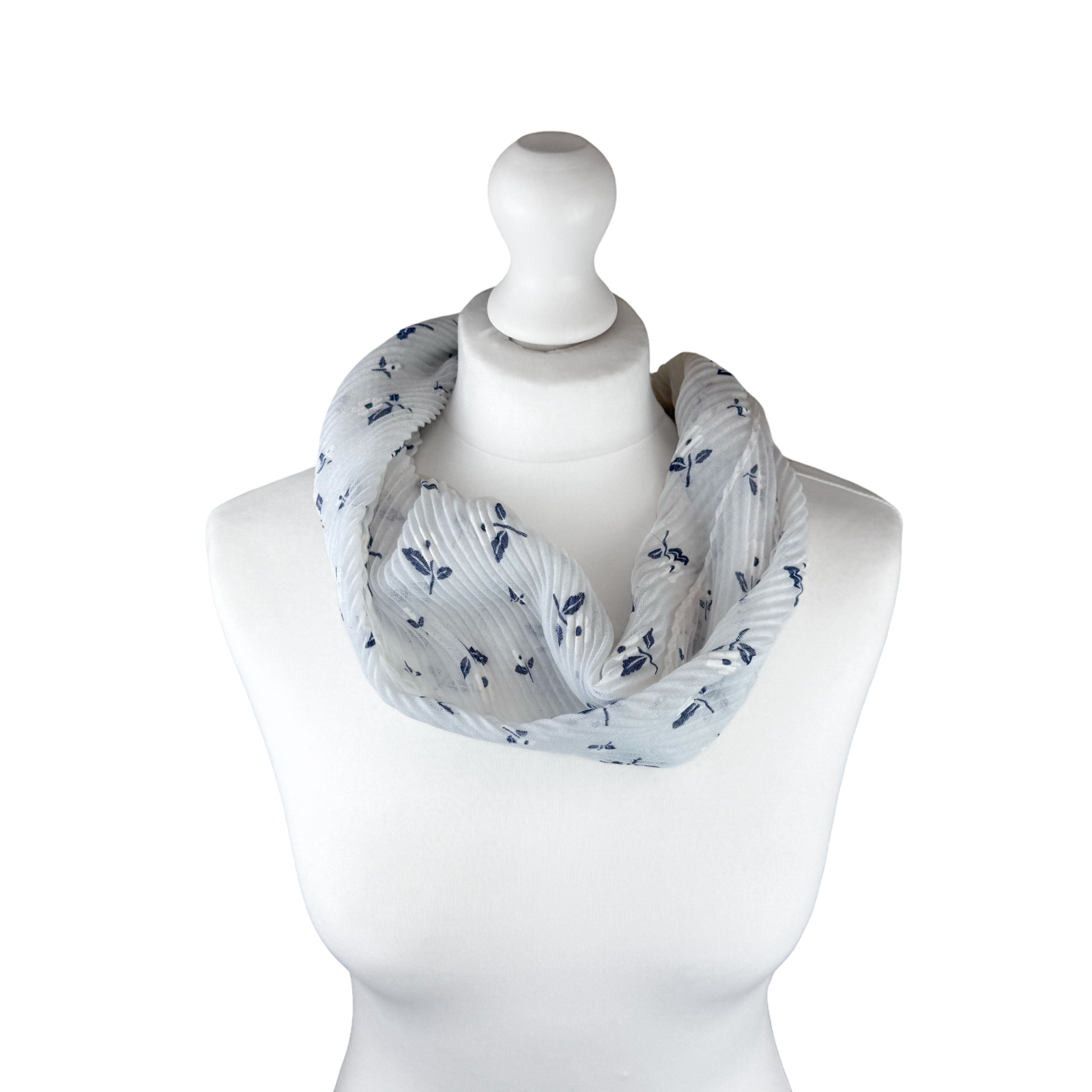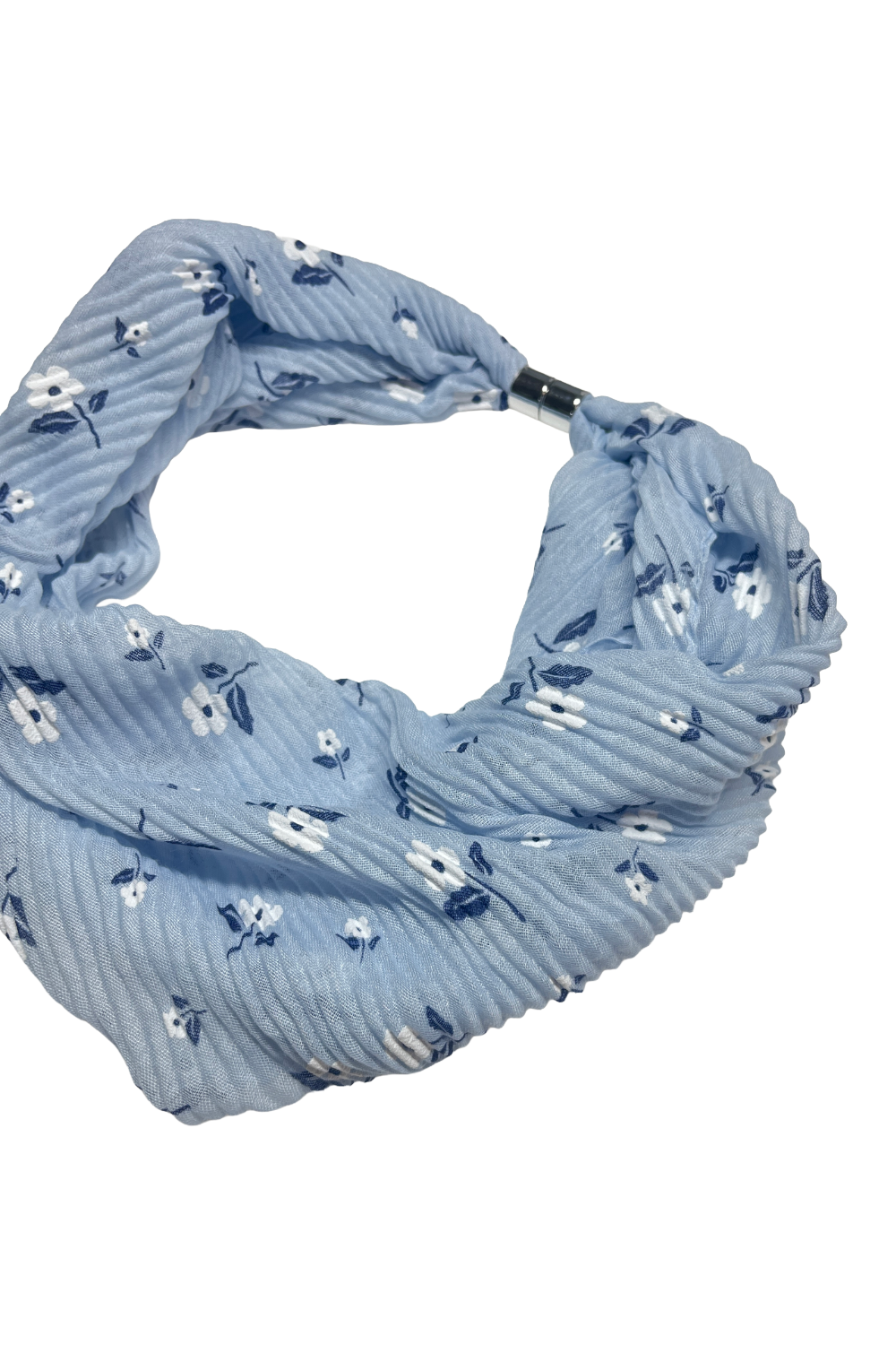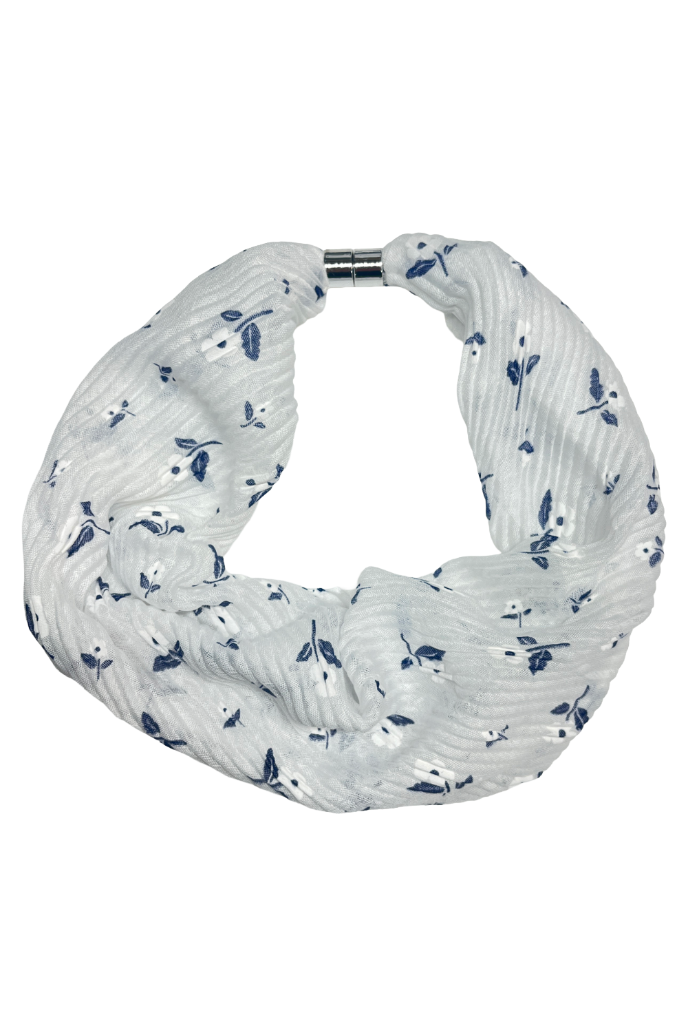 The Medium Daisy Crinkle Magnetic Scarf features a dotted daisy print set against a plain background. Made from softly textured crinkle fabric with a subtle speckle detail, it fastens with a magnetic clasp for easy, everyday wear.