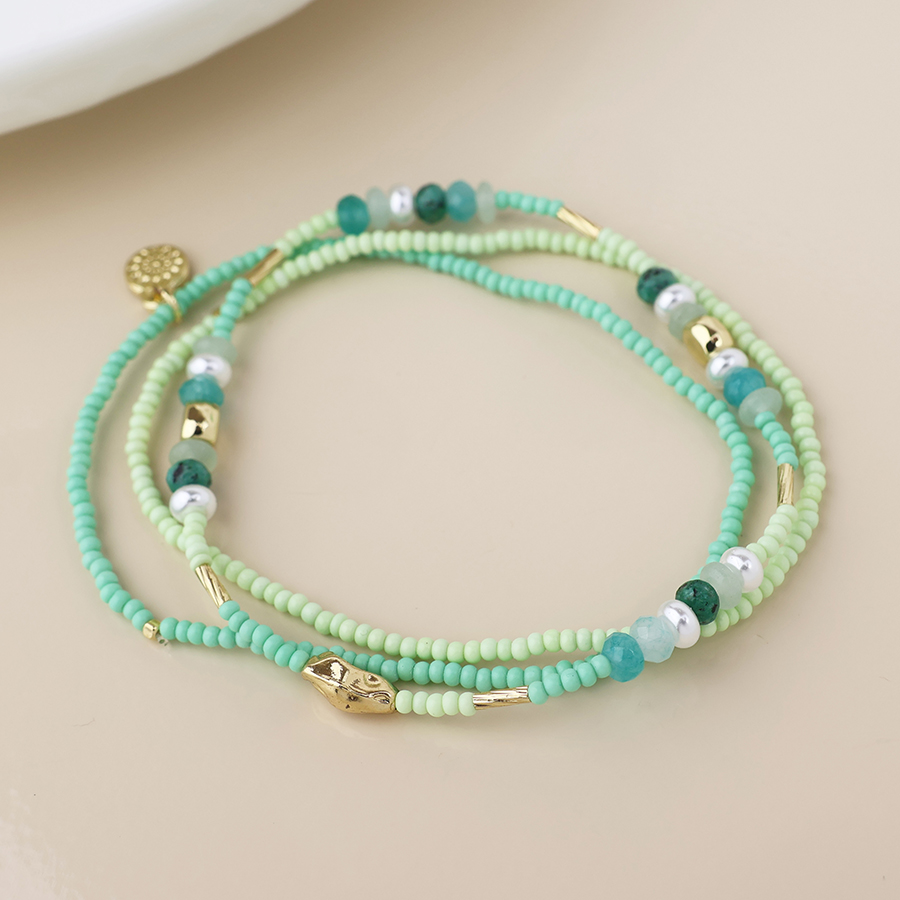 The Multi-Bead Lightweight Necklace features a triple strand of fine beads in colourful tones, accented with faux gold plated details and white pearls. Lightweight and versatile, it can also be wrapped and worn as a bracelet.