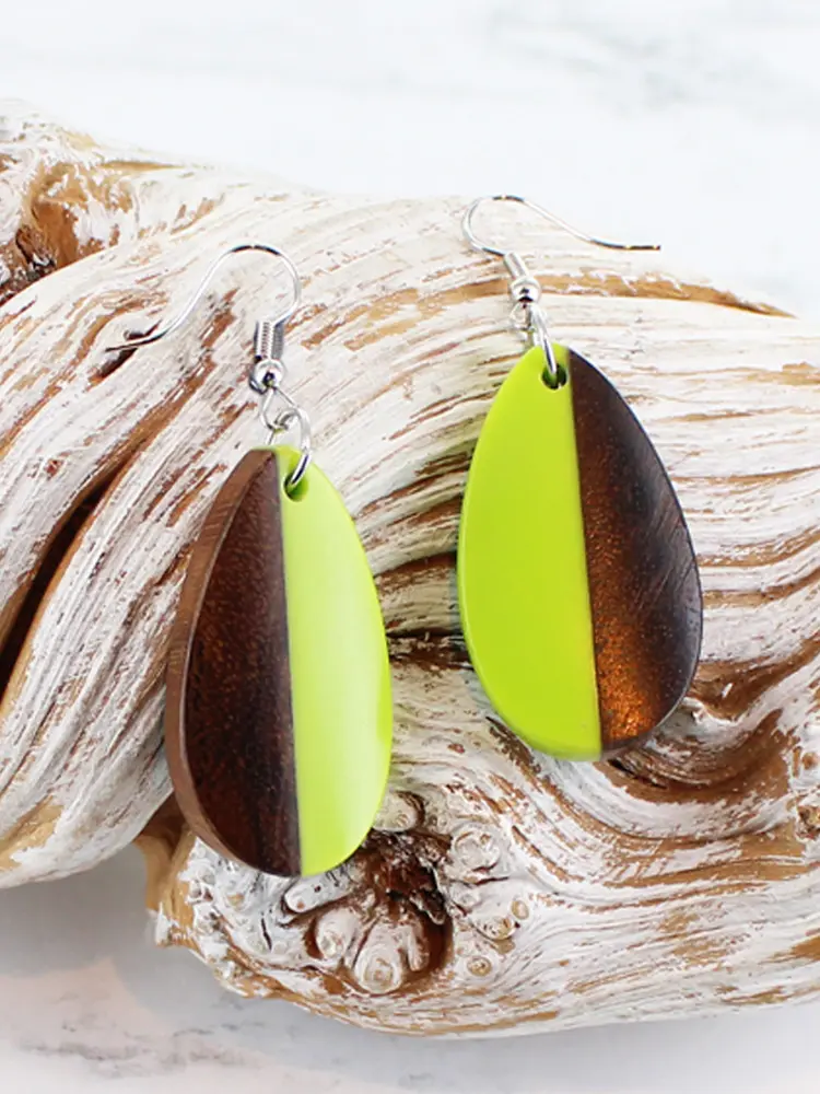 Resin and Wood Oval Drop Earrings