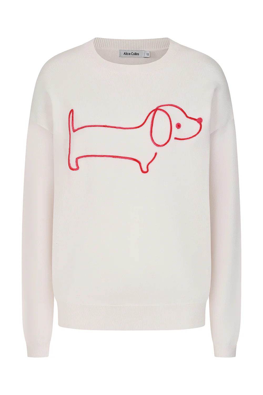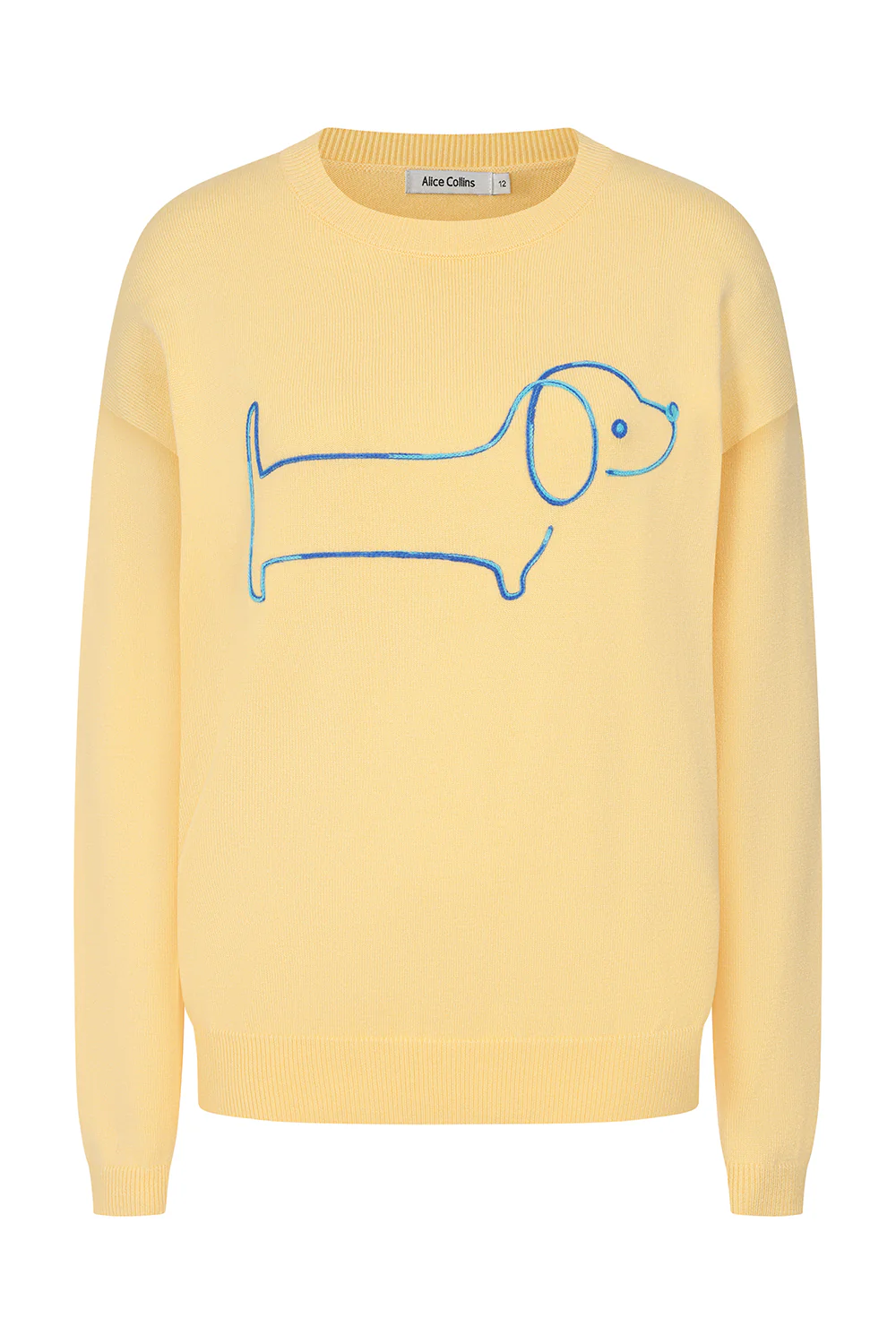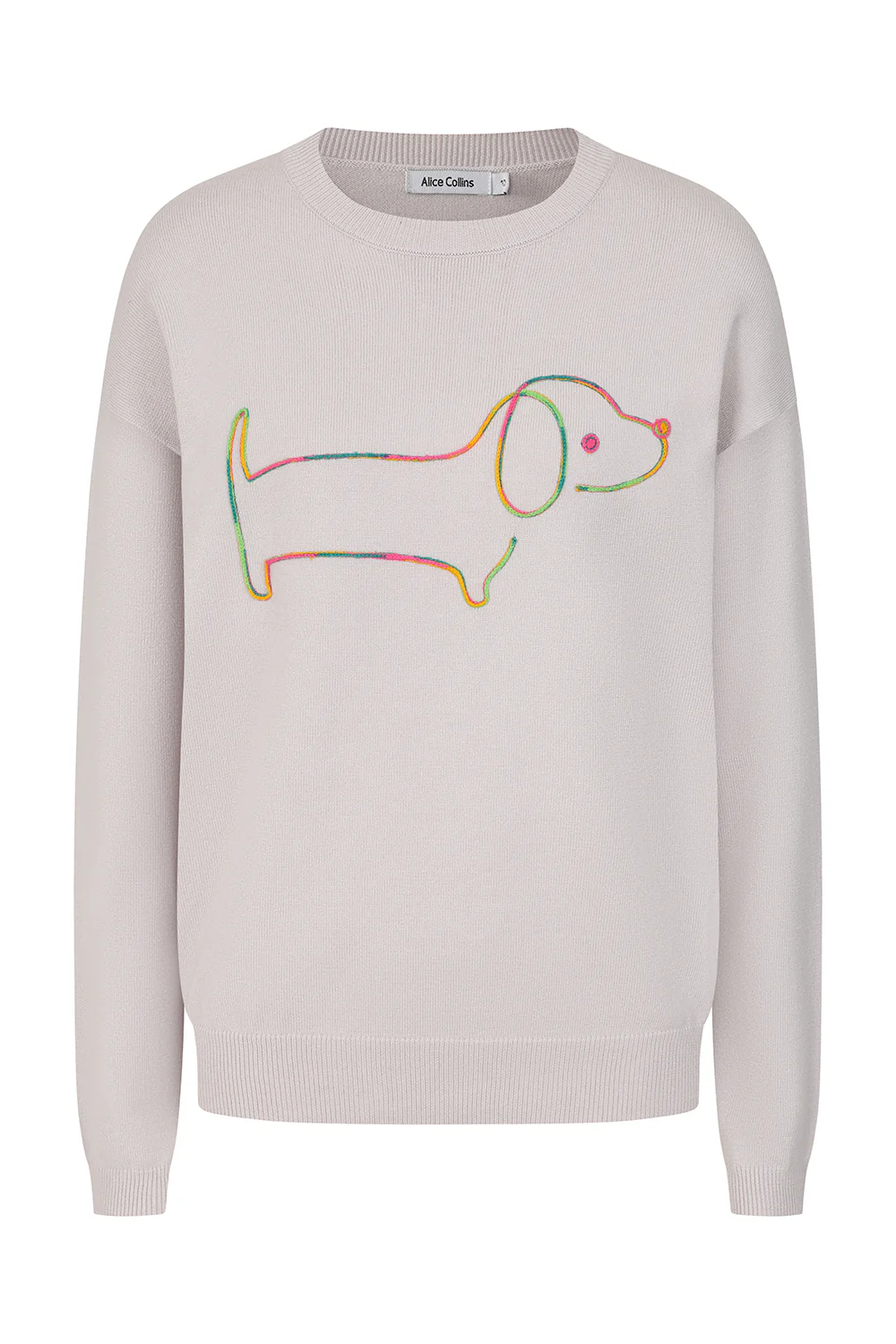 The Sausage Dog Pullover by Alice Collins is designed in bright colourways for a playful everyday jumper. Made from a soft knit with a high-quality finish, it offers a great fit that is comfortable and easy to wear.