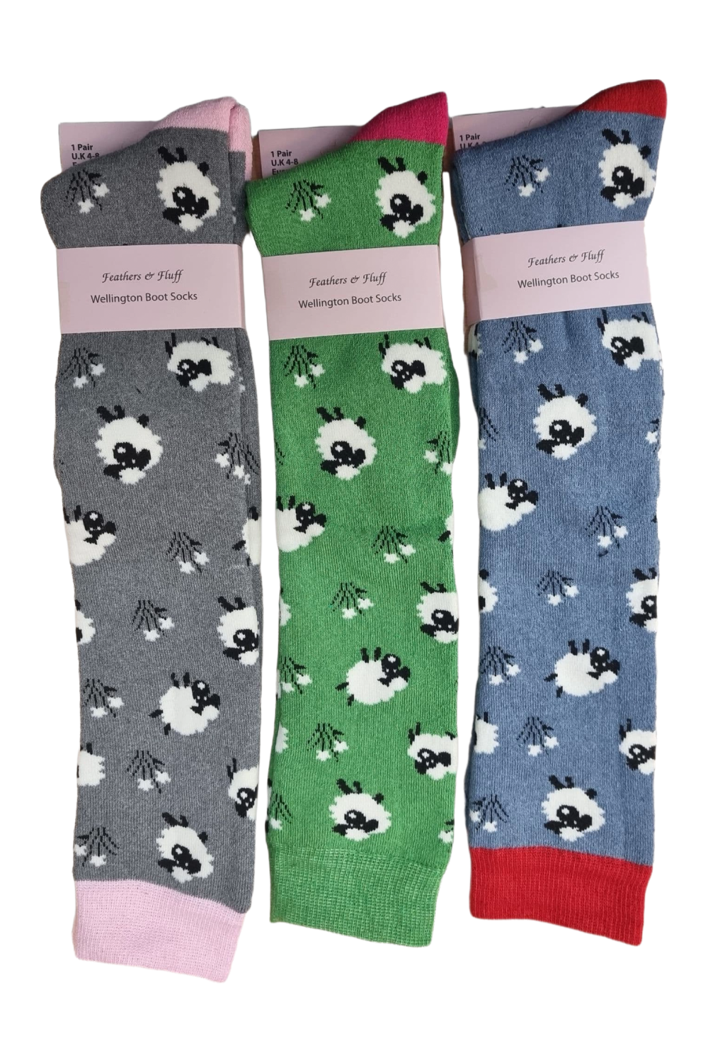 The Women’s Sheep Pattern Welly Socks are designed for warmth and comfort on chilly days. Made from soft, thick material with a cute sheep motif, these long socks fit perfectly inside wellies—ideal for countryside walks or outdoor adventures.