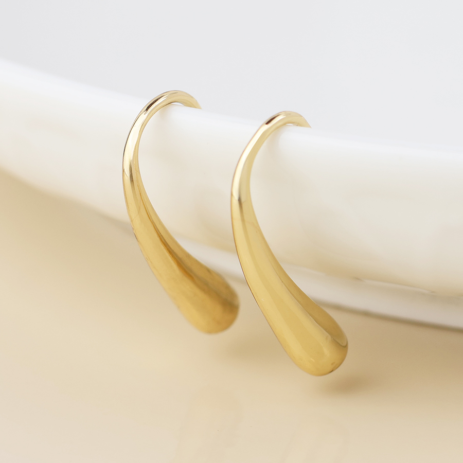 Simple Curved Drop Earrings feature an elegant teardrop shape with a smooth, modern curve. Available in gold or silver (silver plated), they are finished with fine fixed hooks and have an approximate drop size of 25mm x 7mm.