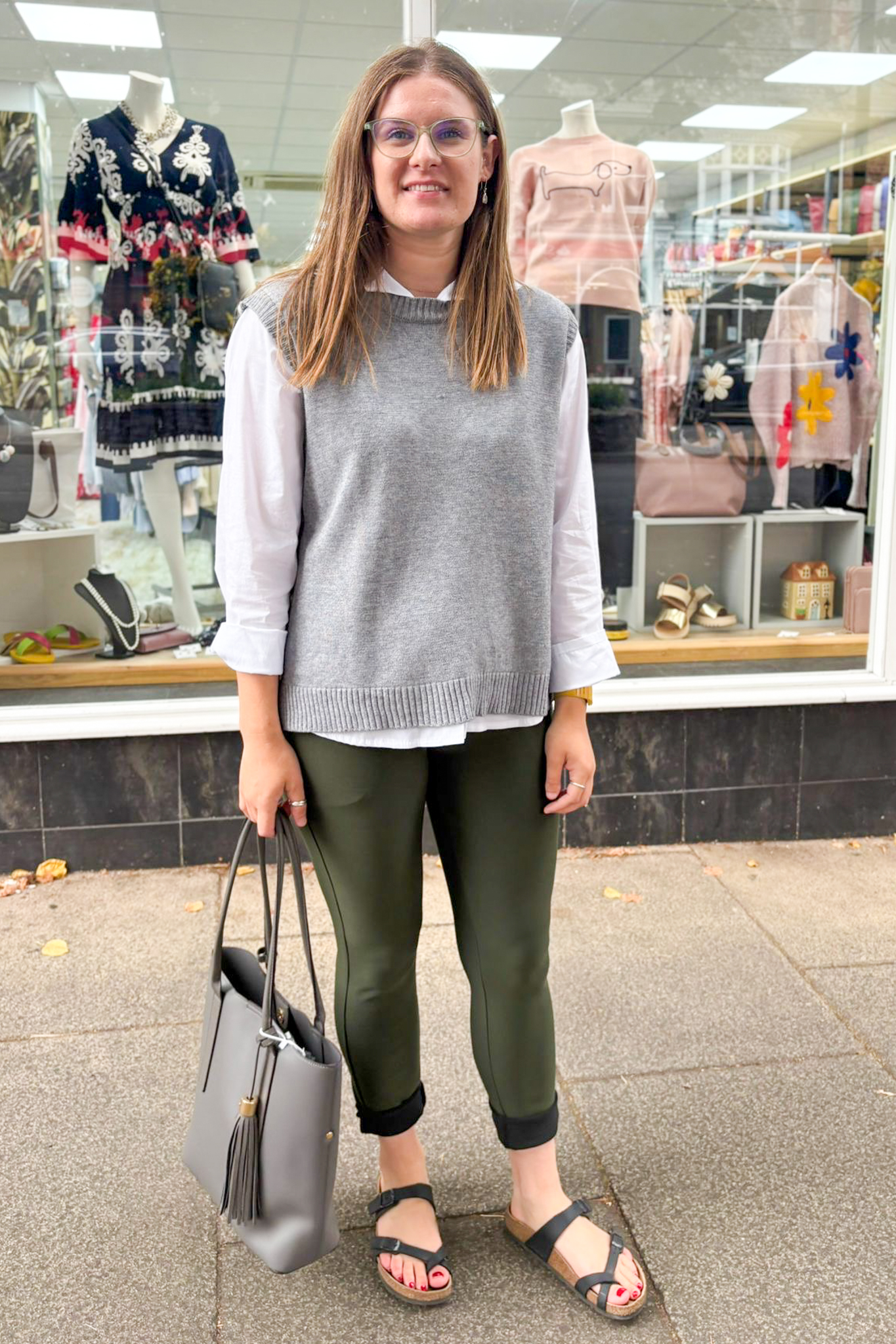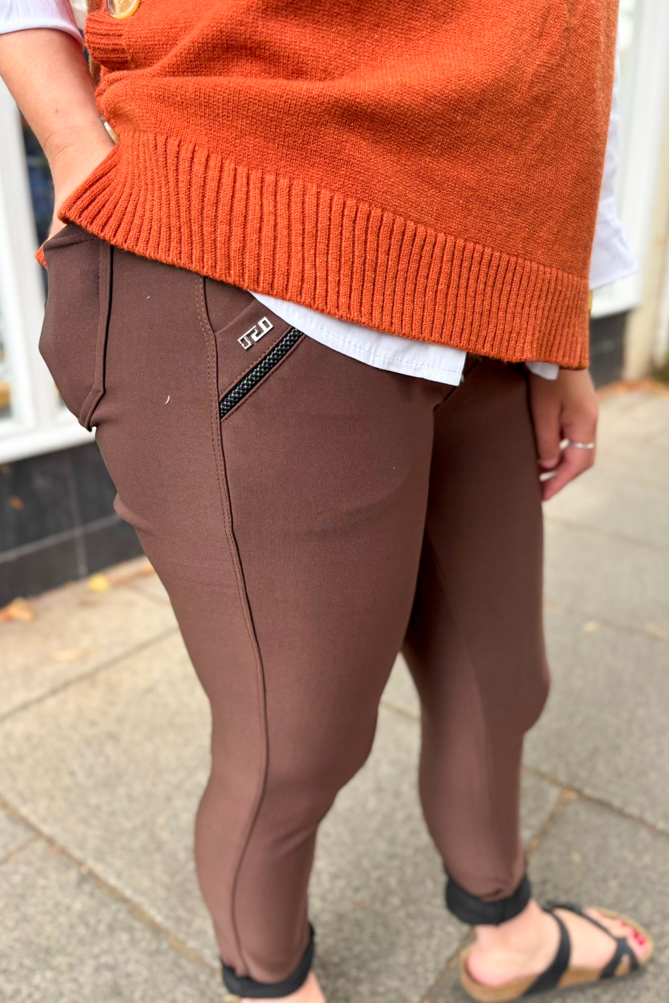 A super soft and super stretchy magic stretch jegging with front and back pockets and PU stitch detail in a classic Charcoal Grey, Black, Navy, Brown and Forest Green.