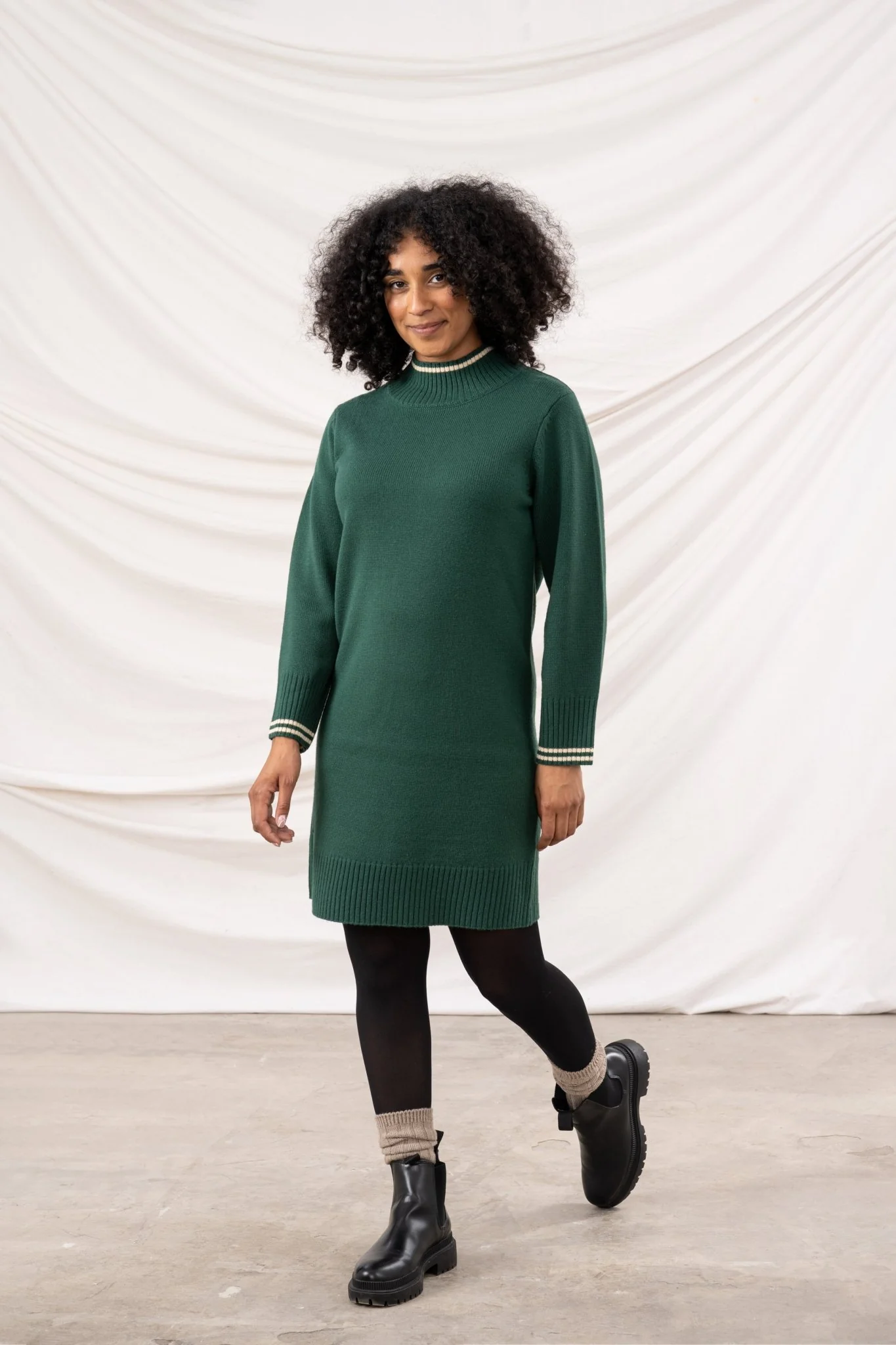 The tubular collar and integral hem and cuffs keep things neat and structured, while the midweight feel makes it perfect for layering over tights or leggings on cooler days. Pair with trainers for a café catch-up on a crisp morning or match with boots for an evening adventure.