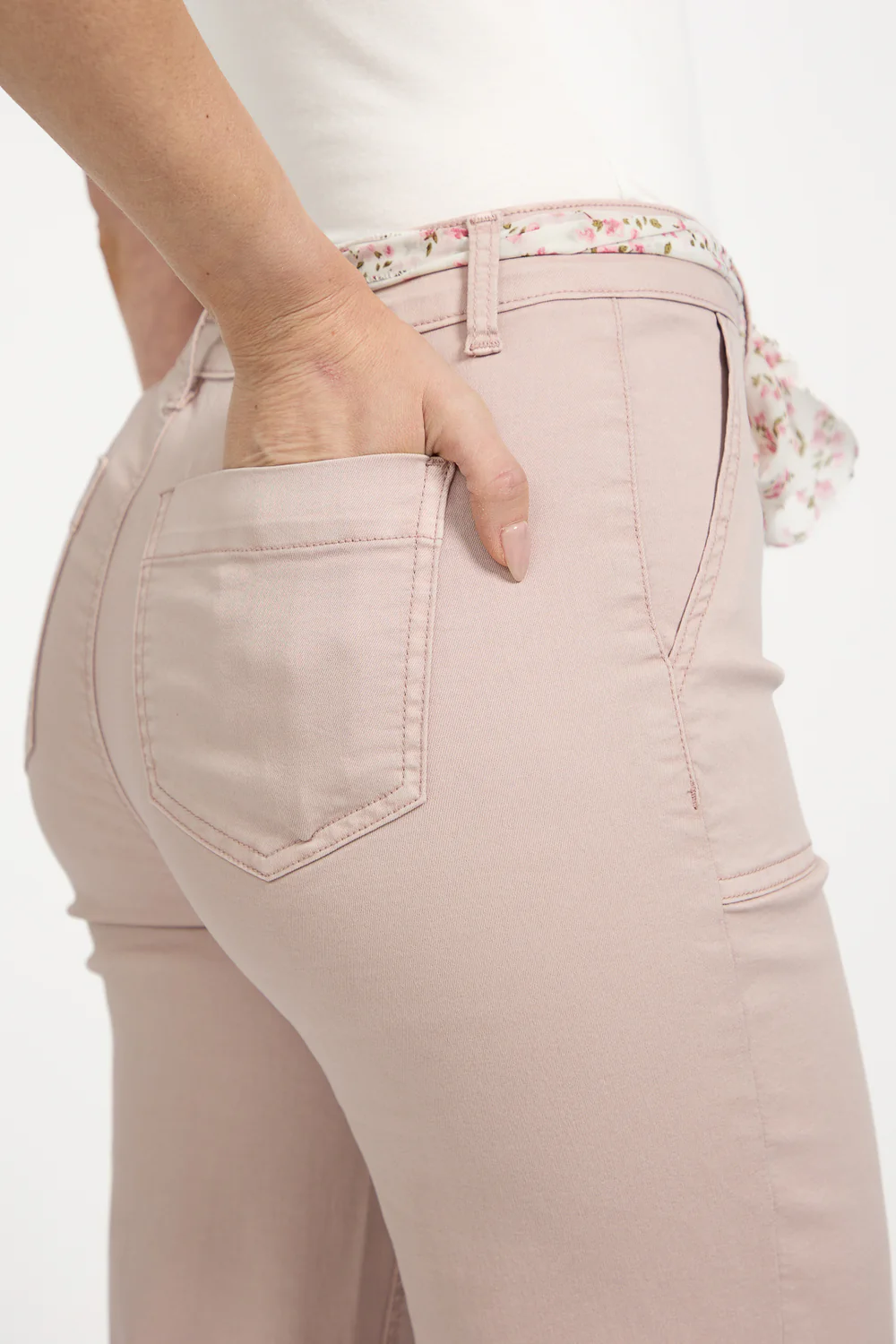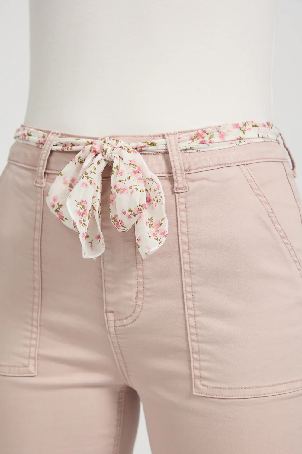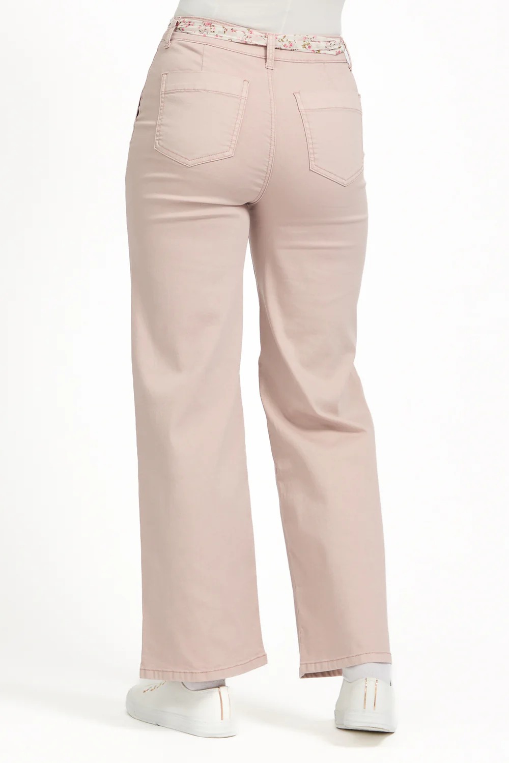 Mudflower Wide Leg Pastel Cargo Trousers feature a relaxed fit with a soft pastel finish. Designed with large front pockets and a detachable floral scarf belt, they offer a practical yet stylish look for casual days and easy everyday wear.